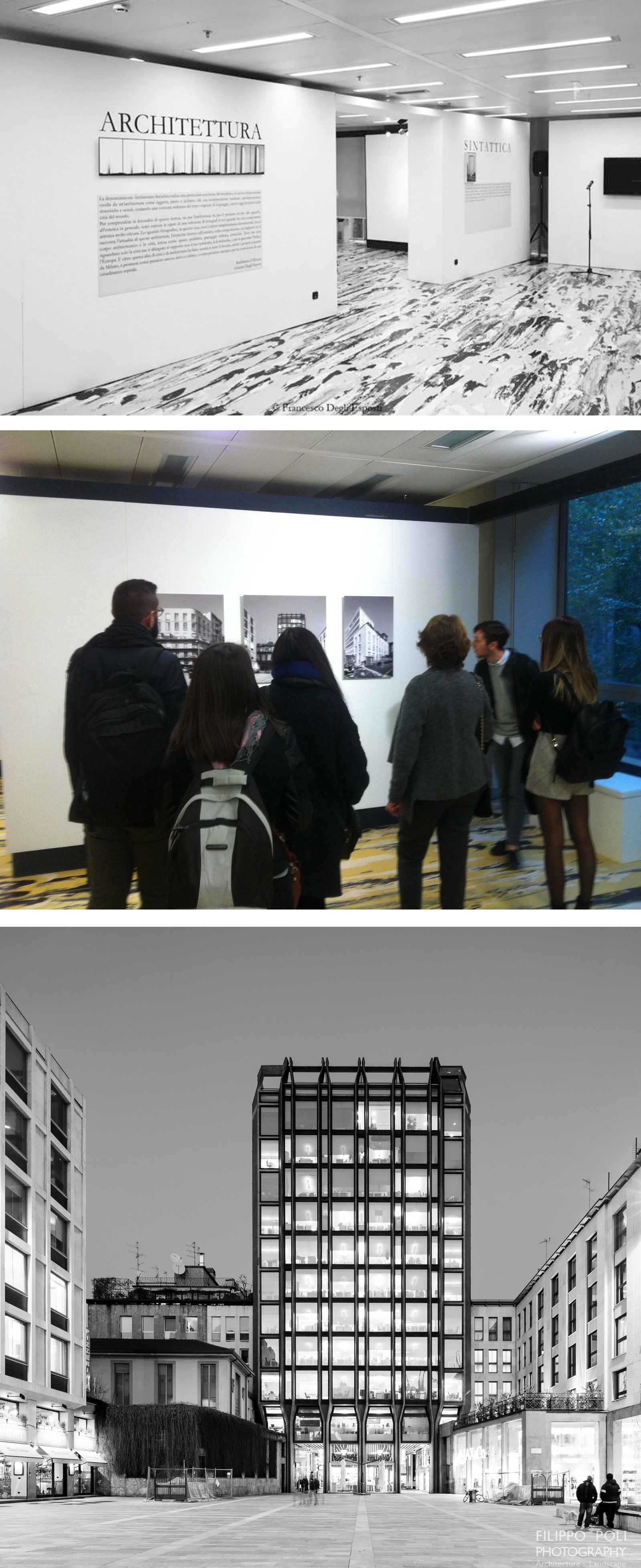 La exposición comisariada por Lorenzo Degli Esposti y Maddalena d'Alfonso presentó las fotografías de 10 fotógrafos italianos, además de Filippo Poli, Matteo Cirenei, Marco Introini, Marco Menghi, Maurizio Montagna, Maurizio Petronio, Giada Ripa, Filippo Romano, Claudio Sabatino y Daniele Zerbi, que retrataron 15 obras maestras de arquitectos como Muzio, Ponti, Lingeri, Figini e Pollini, Terragni, Cattaneo, Moretti, BBPR, Bottoni, Minoletti, Asnago e Vender, Mattioni, Mozzoni, Viganò, Mangiarotti, Morassutti, Soncini, Caccia Dominioni, Rossi. Las obras fotográficas no son meramente documentales, sino que narran la relevancia de estas arquitecturas, la investigación avanzada sobre estética, composición, relación entre el cuerpo arquitectónico y la ciudad, el espacio público, el paisaje urbano y la comunidad. Filippo Poli presentó en esta ocasión una serie compuesta por arquitecturas de M. Asnago, C. Vender y E. Soncini. La exposición celebrada en Grattacielo Pirelli formó parte de las actividades culturales organizadas por Pabellón de Arquitectura de la EXPO 2015 Belle Arti bajo la supervisión de Vittorio Sgarbi, un programa de la región de Lombardía en colaboración con la Triennale di Milano.